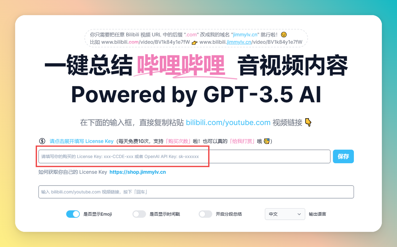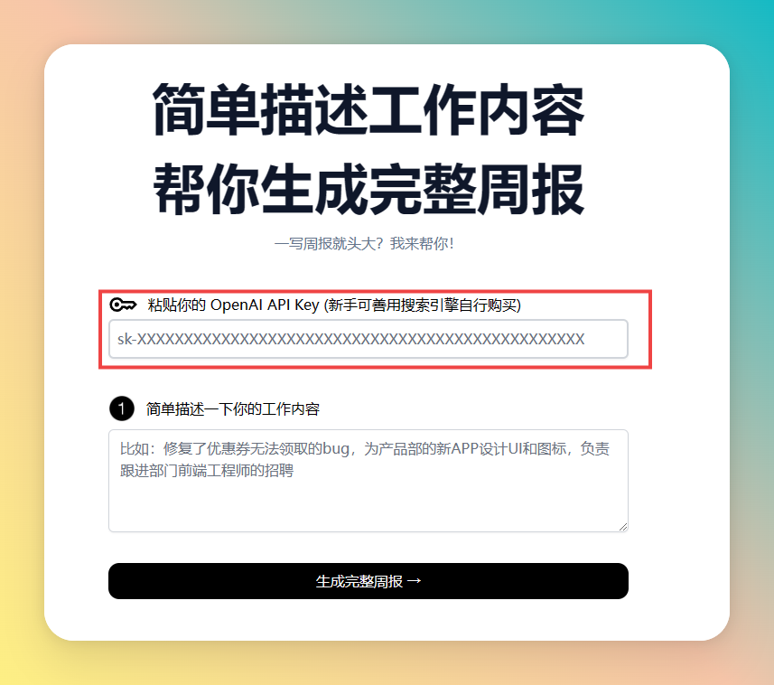 比如:https://b.jimmylv.cn/ (opens new window) 和 https://weeklyreport.avemaria.fun/zh (opens new window) 网站,填写自己的 API 之后即可正常使用,不受次数限制。相当于花自己账号中的钱。(新注册账号赠送 5 美金)