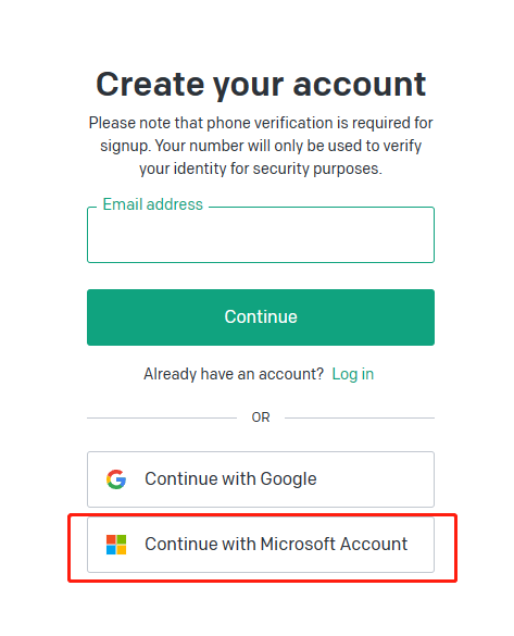 现在很多邮箱已经不再支持,需要使用 gmail 邮箱才能正常注册。推荐注册一个 outlook 邮箱,再通过点击红框注册就可以了。